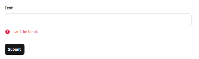 If error happened flow goes to {:error, changeset} case where we assign changeset populated by errors to the form which automatically renders errors notifications for us. For example if we'll try just click the button without typing any text we should see error right away: